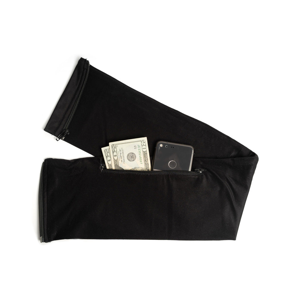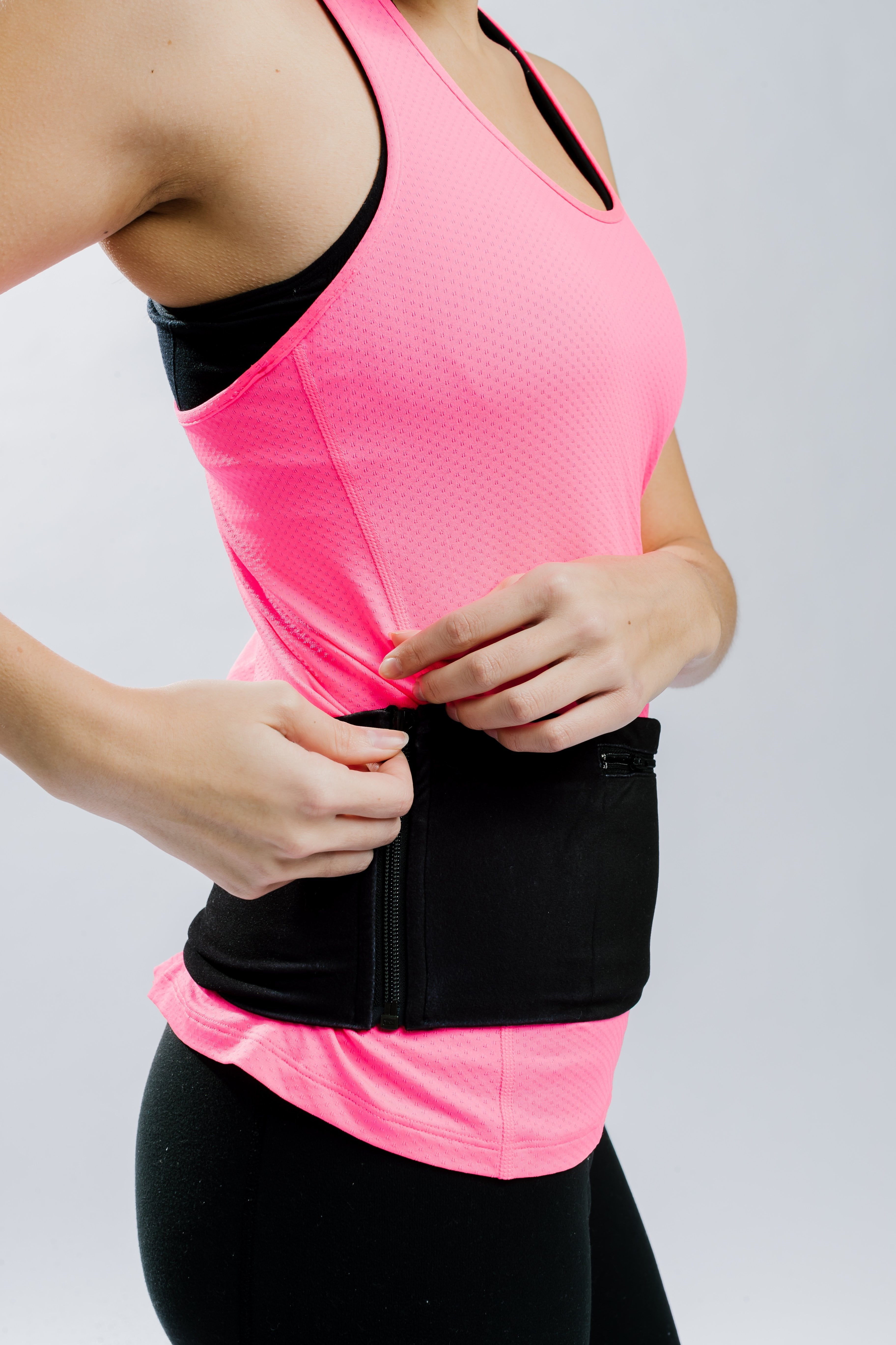 Ditch the heavy purse or backpack on your next errand run, night out, or workout with this stretch belt. Two zippered pockets keep your hands free and your keys, wallet, phone, and other essentials secure.- Side zipper entry