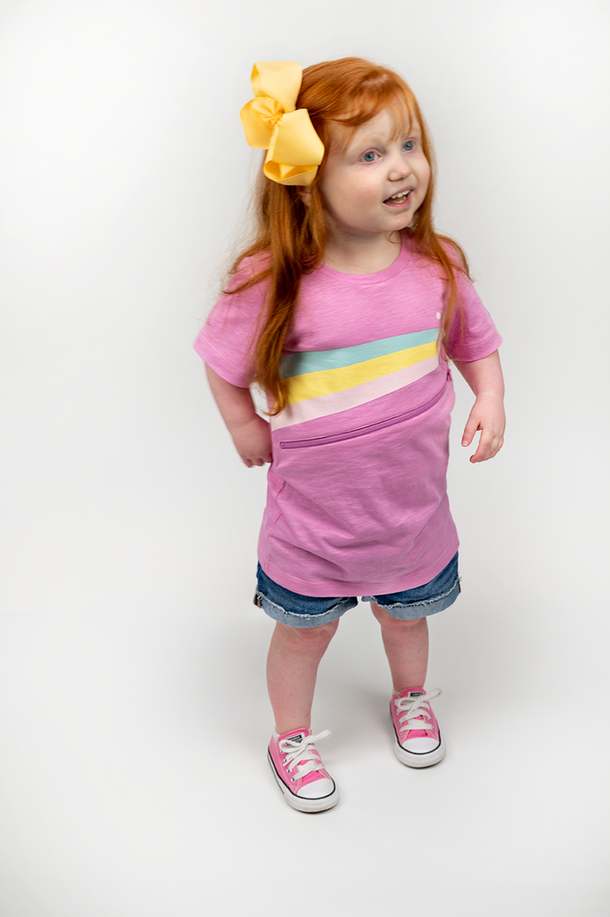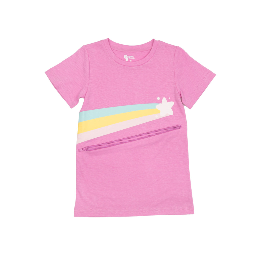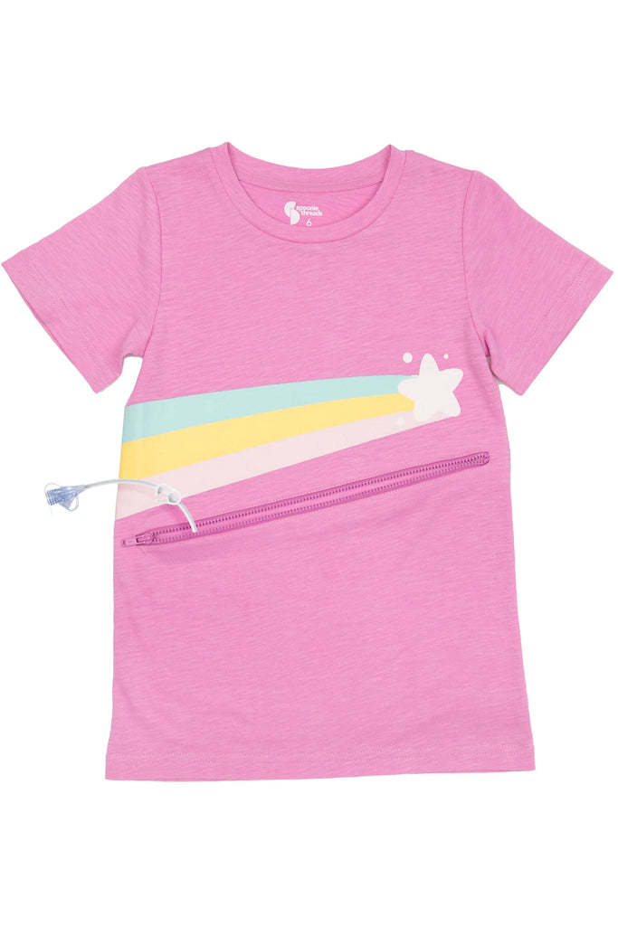 Make a wish upon a shooting star! ⭐ A soft cotton tee with a concealed zipper across the midsection for easy access to g-tubes, ostomy bags, and other centrally located devices. Express yourself in a colorful tee designed to offer the look and feel of a traditional T-shirt, with the functionality to easily access your devices throughout the day without having to remove your clothing.