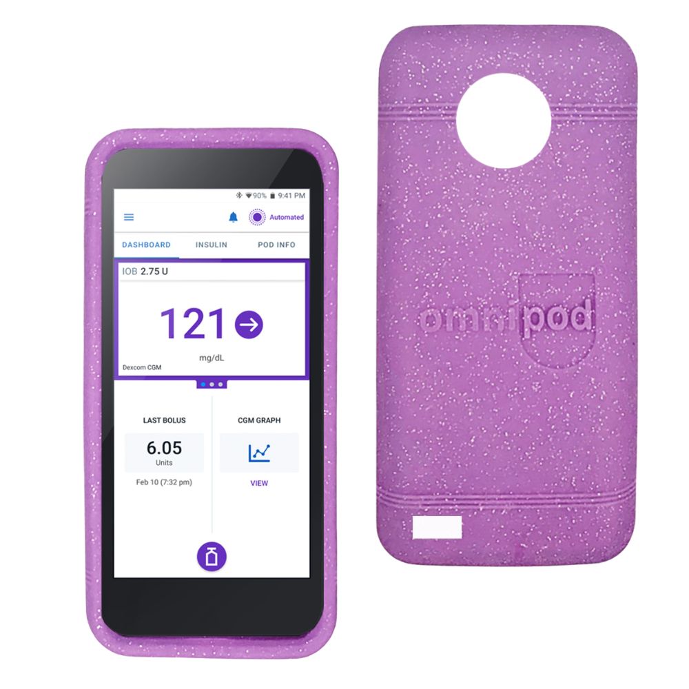 The Purple Glitter Omnipod® 5 Case with Dexcom G7 Cutout provides reliable protection while maintaining full device functionality. Made from high-quality silicone, it offers a secure, durable fit and includes a cutout for easy Dexcom G7 pairing.