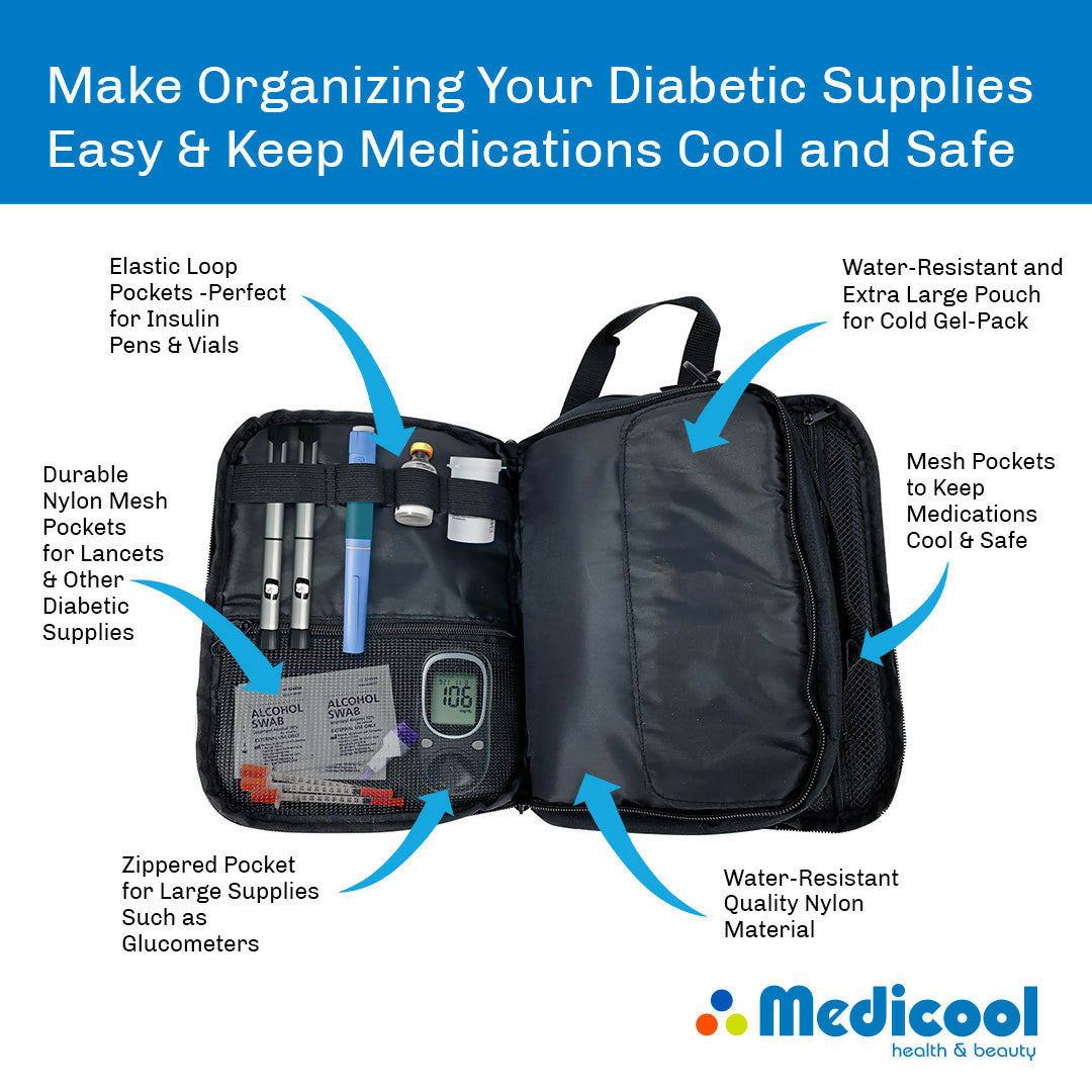 Since 1989, Dia-Pak has been the product of choice to keep your insulin and related supplies organized and portable. Constructed of a durable Nylon, the Dia-Pak Elite organizes up to 2-weeks supply of all your required diabetic supplies in a variety of pockets and storage compartments.