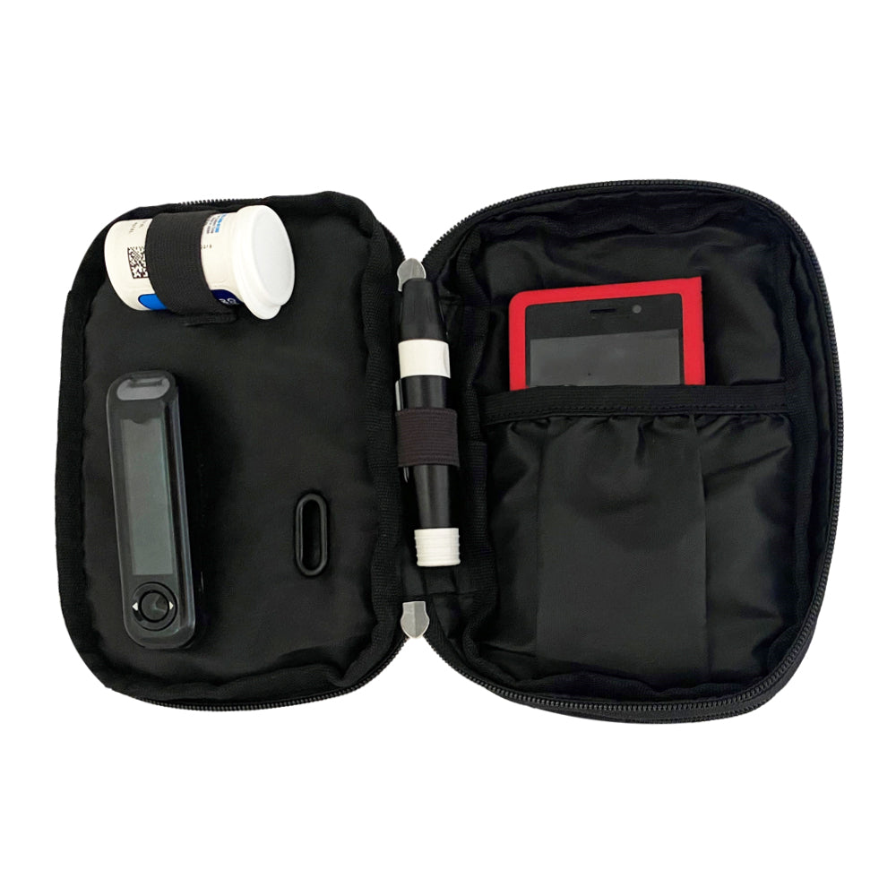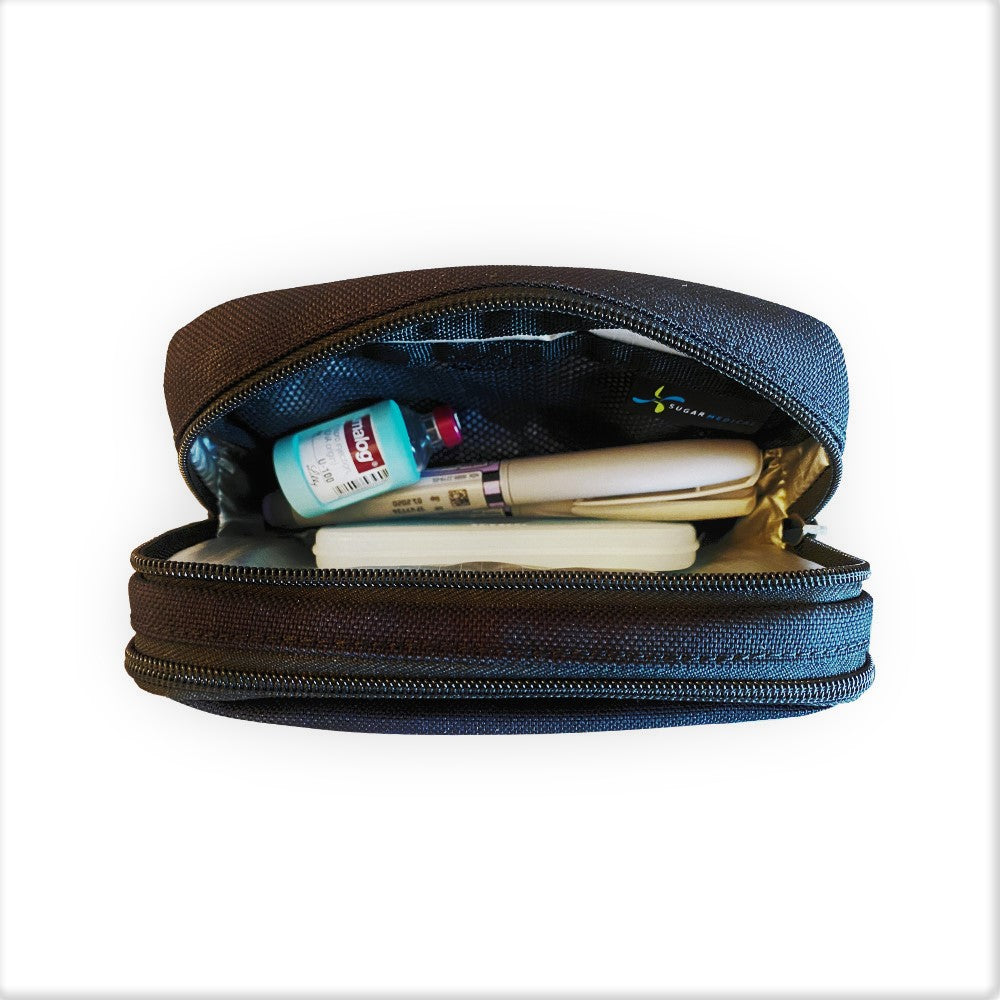 - Room for insulin pens, pump supplies and daily testing supplies