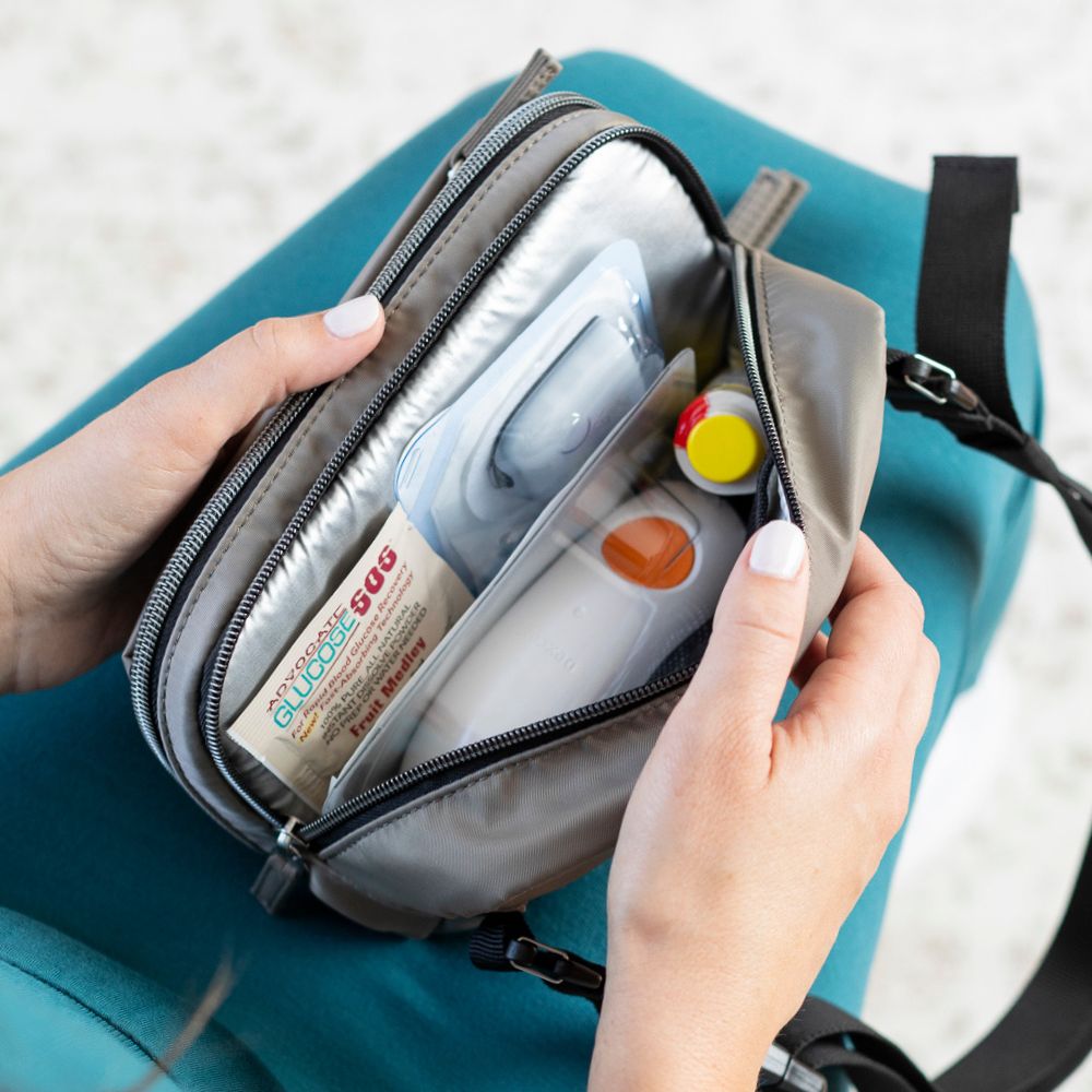 - Room for insulin pens, pump supplies and daily testing supplies
