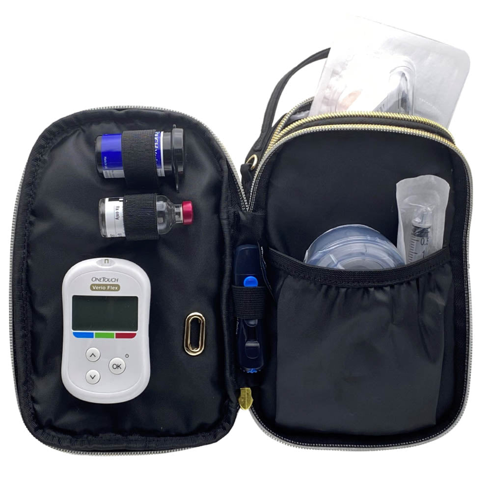 Dazzle and shine with this fan favorite! No matter the occasion, this fierce little bag is everything you need to carry your diabetes supplies and daily essentials. Enjoy a stress-free day of running errands or a fun girl’s night out in style now with more room for your personal items. And we added a loop for your insulin vial!