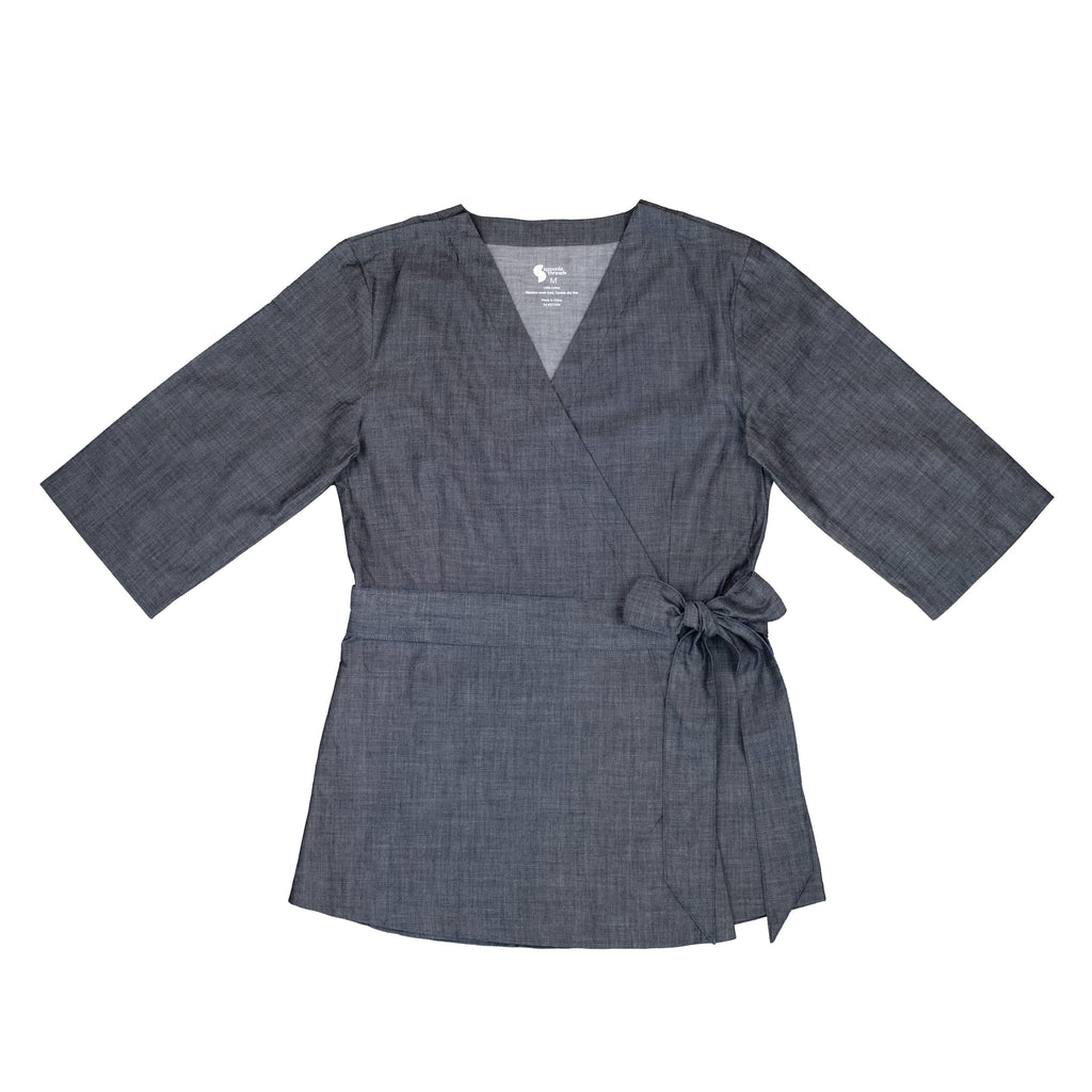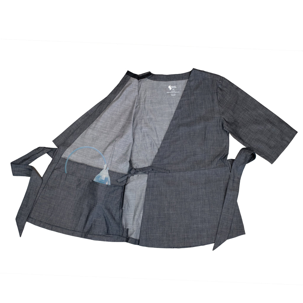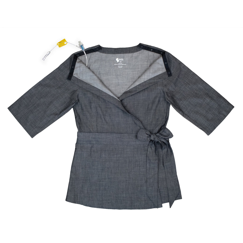 Discover the perfect top for post-surgery care or chemo treatment visits, made from soft Chambray fabric that looks stylish enough to wear out.