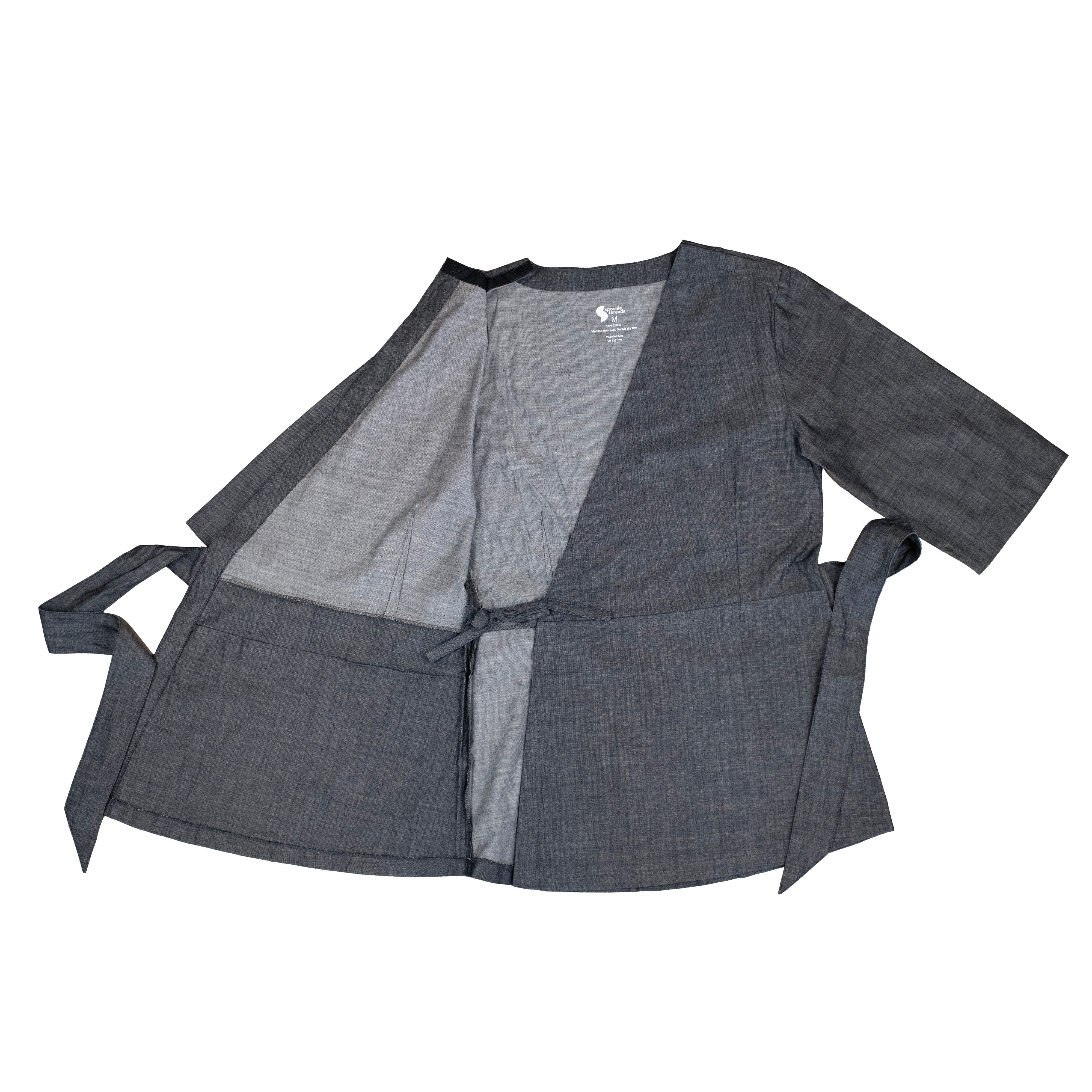 The Kimono-style wrap is also ideal for people with limited upper body movement - no need to raise your arms to dress. It's useful for doctor visits and treatments, allowing full access to port sites and surgical sites but stylish enough for everyday wear.